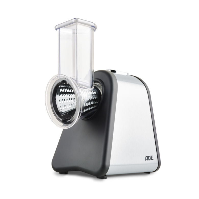 Denna elektriska rivare från ADE skär och river grönsaker och frukt, nötter och ost snabbt. Grov eller fin beror på vilken insats som används. Fyra tillbehör -alla med extra vassa blad av högkvalitativt rostfritt stål och kan diskas i diskmaskin.