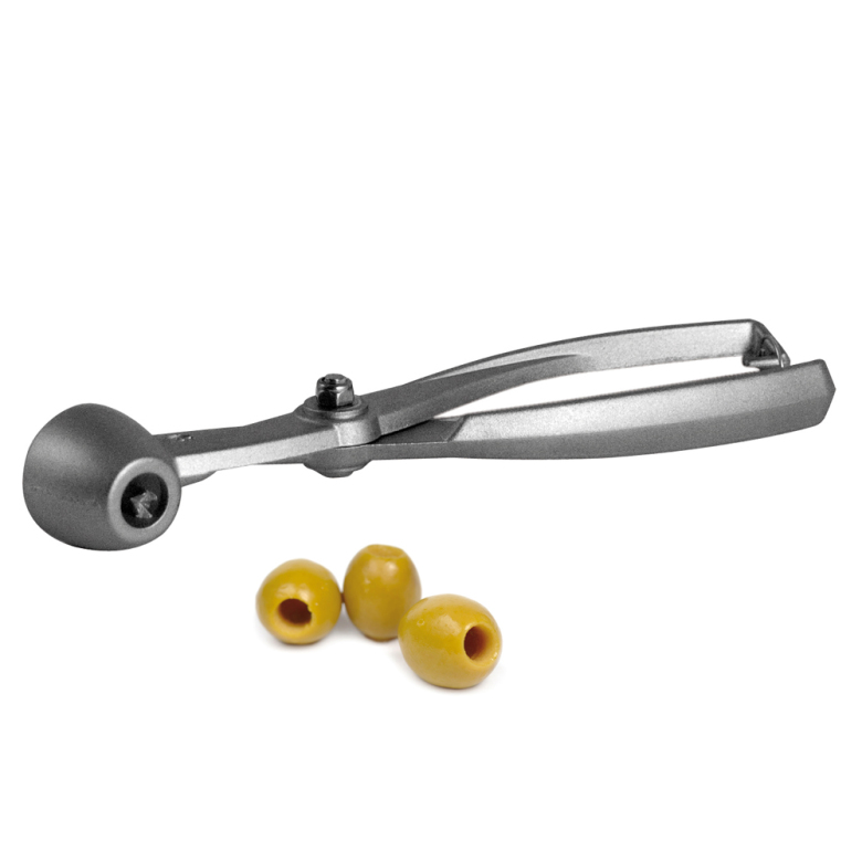 Oliv/Körsbärs tång trycker ur kärnan enkelt och snabbt. Aluminium.