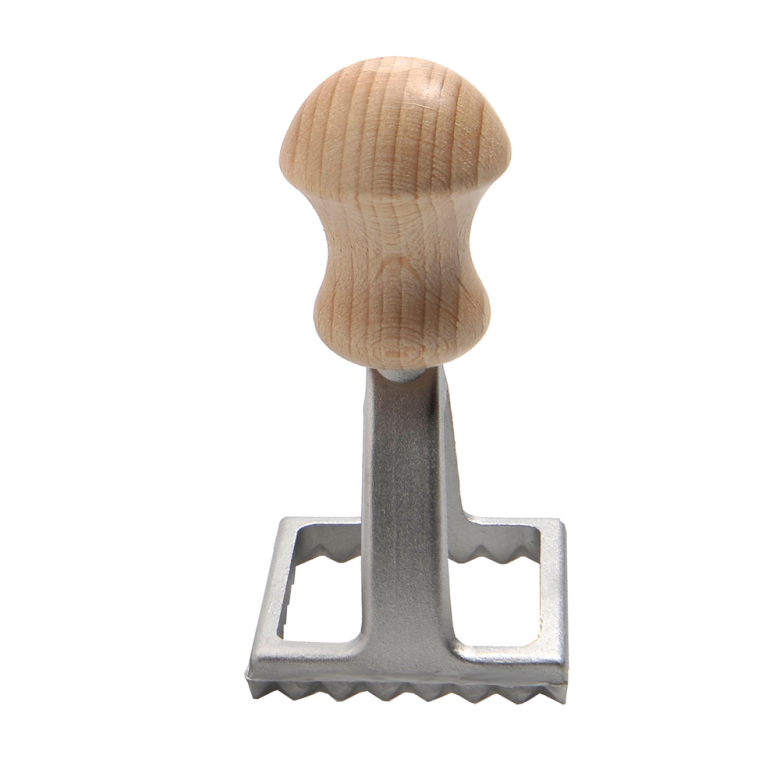 Fyrkantig raviolistans 40 x 40 mm i aluminium och bok.