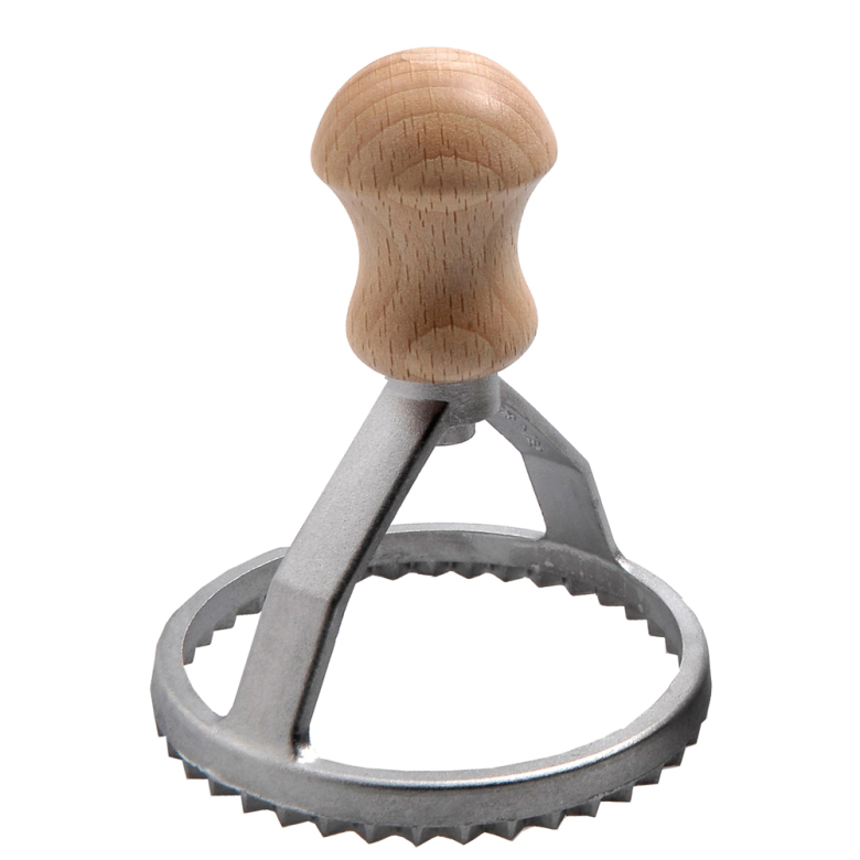 Rund raviolistans 80 ø mm i aluminium och bok.