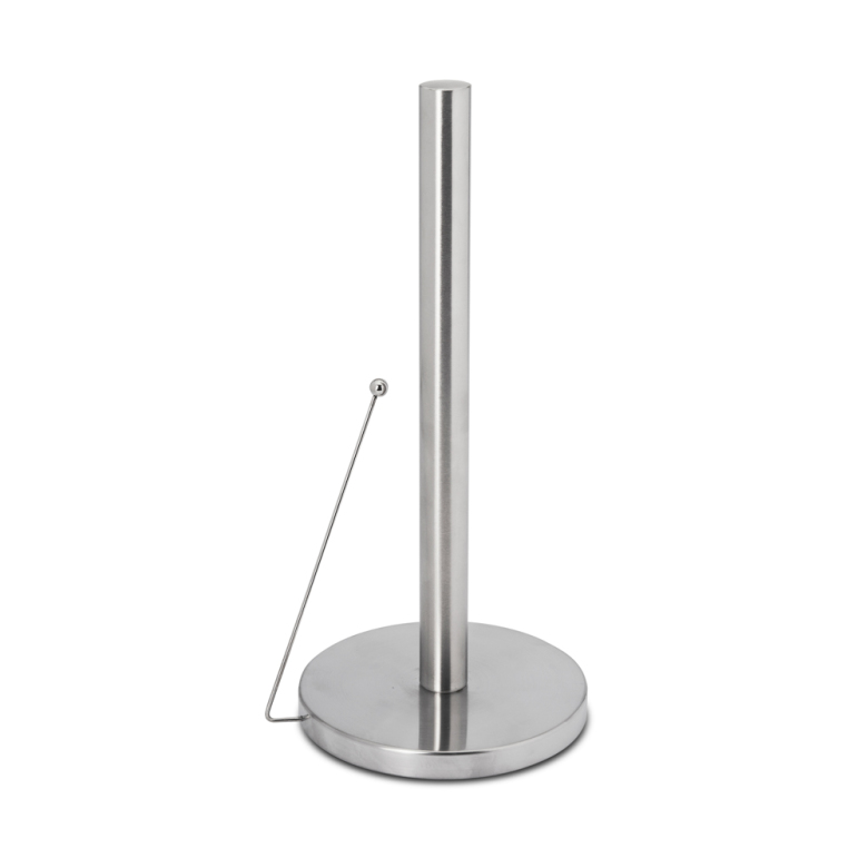 Hållaren för hushållspapper i rostfritt stål är ett hållbart och stabilt verktyg som, tack vare stödramen med kulformad topp, gör det möjligt att riva av hushållspapper med en hand.