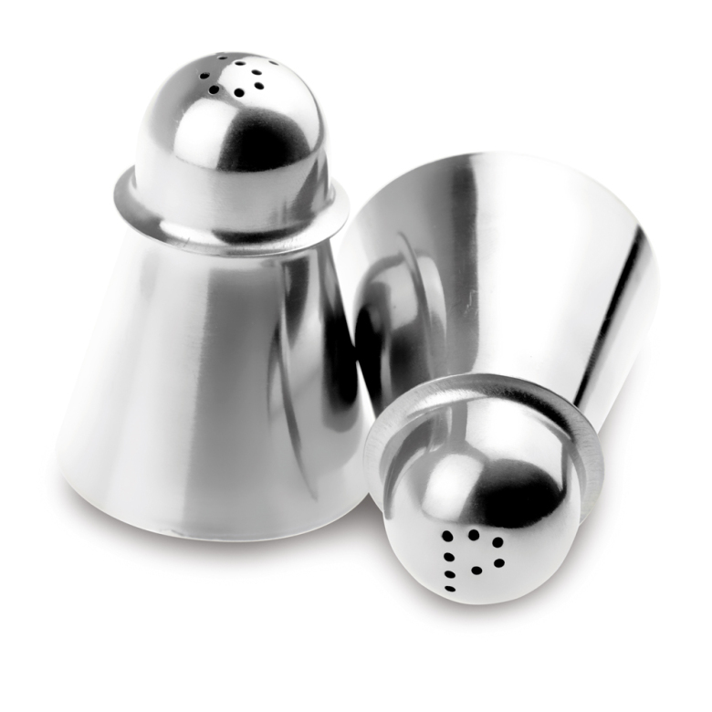 Salt och pepparkar i rostfritt stål. Ta av toppen och fyll enkelt på om det råkar ta slut.