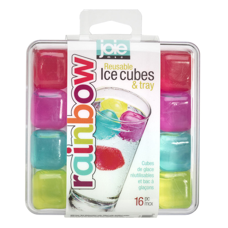 Setet innehåller 16 st frysbara iskuber i glada färger. Förvaras i frysen och ta fram vid behov. Efter användning fryser man dem igen. Allt förvaras i en praktisk genomskinlig box.