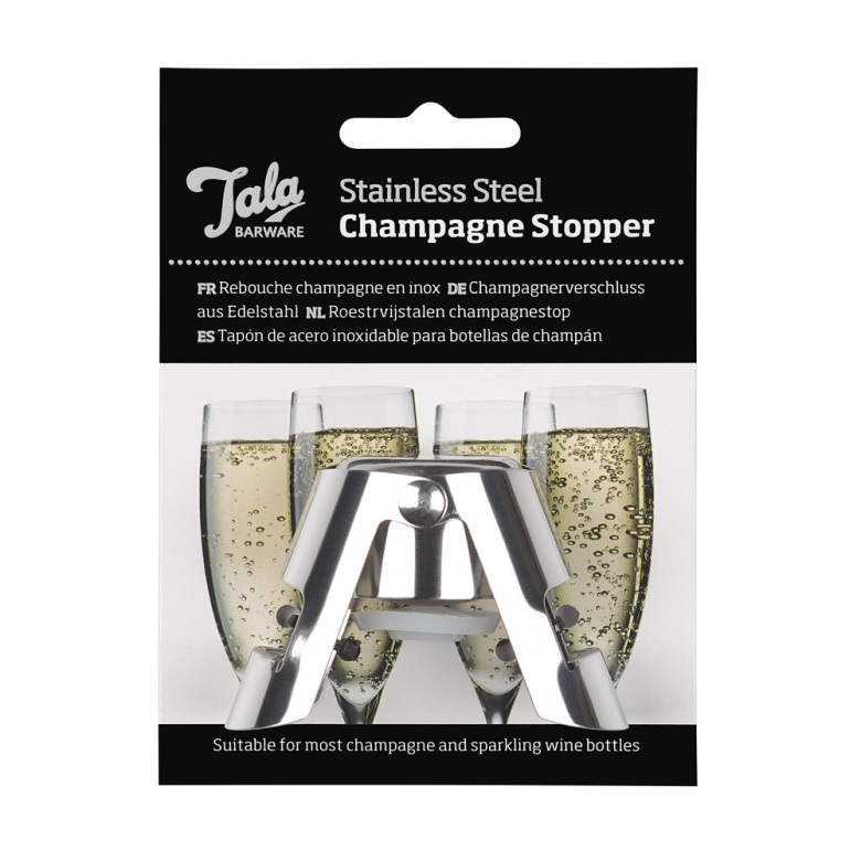 Håll champagne och kolsyrat vin mousserande och fräscht med Tala Champagnekork. Korken passar alla standard champagne och prosecco eller kolsyrade vinflaskor. En idealisk pryl att använda för ej uppdruckna flaskor.