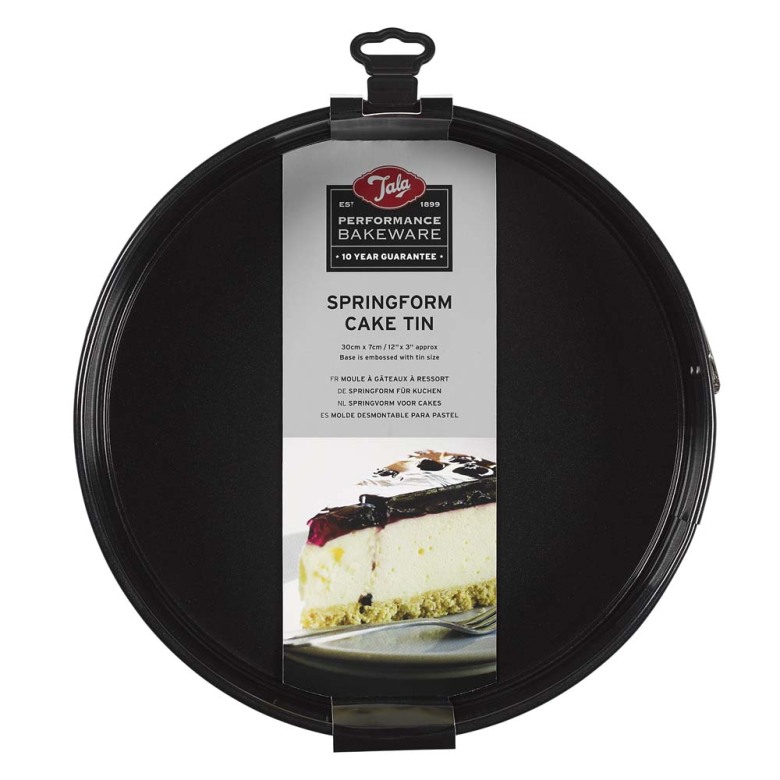 Springformen är en del av Tala Performance Bakeware. Serien är belagd med dubbla lager av "Premium Whitford Eclipse Coating". Detta innebär att produkten kan användas med metallredskap och levereras med en tio års garanti. Den tål kyl, frys och diskmaskin. Tala Performance är den bästa non-stick serien på marknaden.