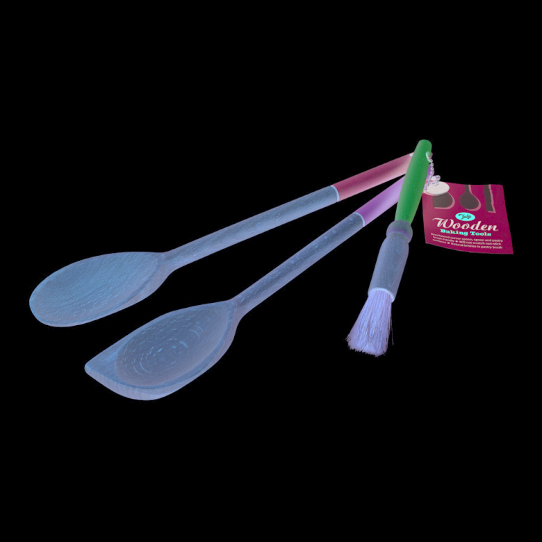 En bakpensel och släta träslevar och som inte kommer inte att repa några non-stick ytor. Av bokträ. Säljs i sorterade färger.