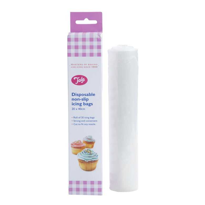 Vår rulle med 30 extra starka, halkfria påsar kan användas med eller utan ett tyll. Mät och klipp till rätt storlek så att den passar ditt munstycke. Dessa påsar är återvinningsbara vilket gör dem till ett hållbart val för dina bakbehov. De är perfekta för alla typer av icing och kan användas för att spritsa andra typer av mat. Påsarna har en storlek på 20 x 40 cm och är perfekta för att skapa vackra dekoreringar.