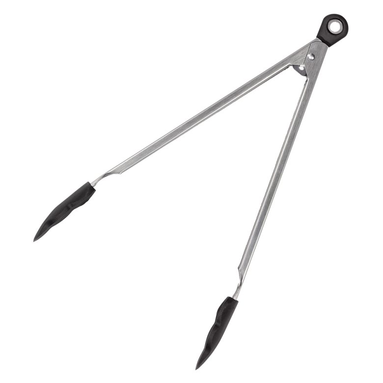 Denna tång är låsbar för enkel förvaring. Fjäderbelastad för enkel användning. De värmebeständiga silikongreppen är lätta att rengöra. Tål diskmaskin.